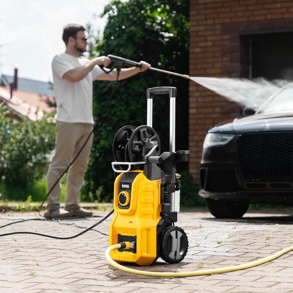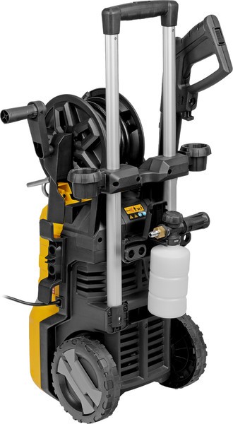 - Максимально комфортное передвижение — длина шнура питания составляет 5 м, длина шланга высокого давления увеличена до 8 м.