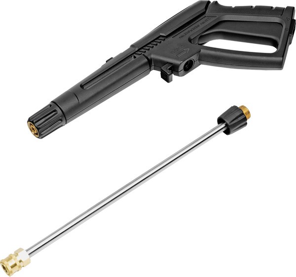 - Защита от случайного пуска — перед началом работы необходимо разблокировать рычаг моечного пистолета.