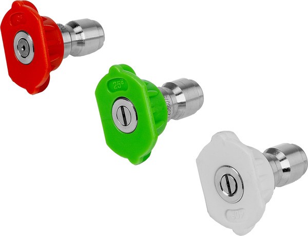- Выбор оптимального угла распыления — машина поставляется с 3 насадками: 0°, 25° и 40°.
