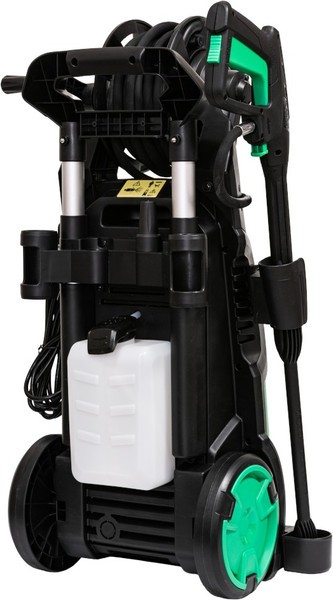 Очиститель высокого давления DWT HDRP21-165DR. Конструктивные особенности: бак для моющего средства, колеса, фильтр. Расположение бака для моющего средства в корпусе. Функции: автоматическое отключение (при критической температуре), предохранительный клапан (защита от превышения давления)