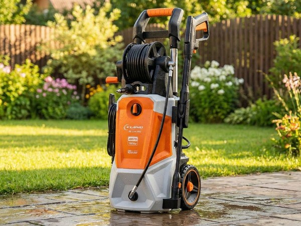 Очиститель высокого давления Eland RE-220X PRO. Конструктивные особенности: бак для моющего средства, фильтр, колеса, ручка для перемещения, катушка для шланга.Функции: регулировка давления, автоматическое отключение