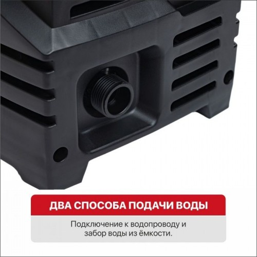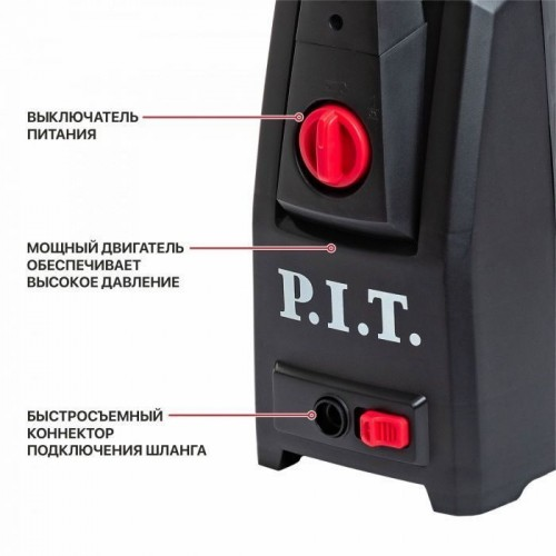 Очиститель высокого давления P.I.T PHP120-C1. Конструктивные особенности: бак для моющего средства, фильтр, ручка для перемещения. Расположение бака для моющего средства отдельно.