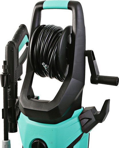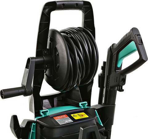 Увеличенный до 10м эластичный шланг высокого давления на барабане позволяет свободно мыть автомобиль, чистить крыши дачных построек и другие объекты не передвигая мойку. Благодаря своей эластичности шланг легко разматывается и сматывается на барабан.