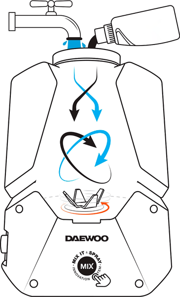 - Инновационная функция Mix&Spray – дополнительная помпа создает поток, который смешивает воду и химические вещества непосредственно в баке опрыскивателя.