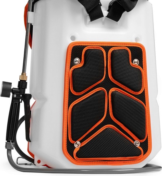 Высокопроизводительная помпа. Опрыскиватель оснащен мощным насосом, который обеспечивает производительность до 3 л/мин, что позволяет распылять более 350 л жидкости на одном заряде аккумулятора. Функция Auto Stop, которая отключает насос при отсутствии распыления и экономит заряд батареи, увеличит время работы опрыскивателя до 20%.