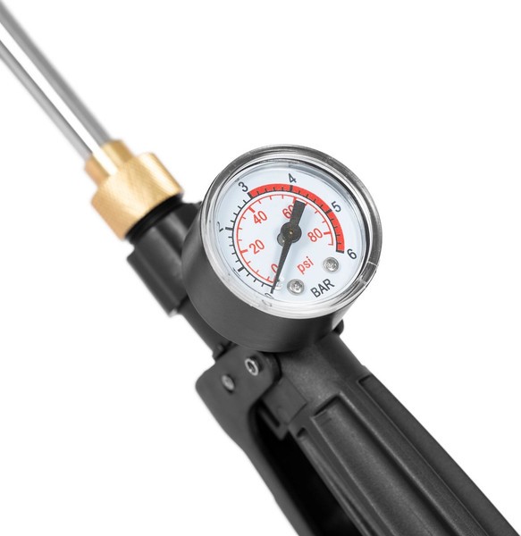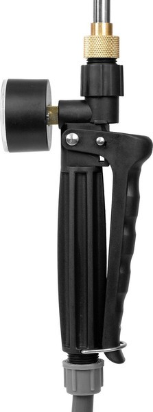 Плавная регулировка давления. Удобный большой регулятор давления позволяет включить инструмент и настроить давление от 1.5 до 5 бар, при этом дальность струи может достигать 8 м