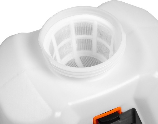 Широкая горловина с фильтром грубой очистки. Широкая горловина опрыскивателя делает наполнение бака очень удобным, а установленный на ней фильтр грубой очистки предотвращает попадание крупных частиц в бак и защищает насос от повреждения.