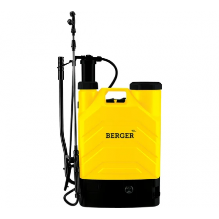 Опрыскиватель аккумуляторный BERGER BG1993, для сада, плечевой, объем емкости: 16 л, расход 2 - 3.1 л/мин, рабочее давление 3.5 бар, корпус: пластик, штанга: сталь, телескопическая штанга, цвет: желтый, вес: 6.2 кг