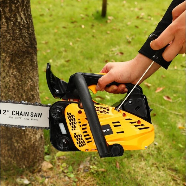 Бензопила DKCHS 25-12 — мощный и надежный инструмент для распила древесины, подойдет для ухода за деревьями на участке, а также для заготовки дров. Защитный щиток является одновременно защитой для рук оператора и тормозом цепи, что не позволяет нанести травмы при соскальзывании и обрыве оснастки. Эргономичная задняя рукоять обеспечивает крепкий хват и надежное удержание инструмента.