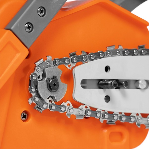 Обеспечивает равномерное распределение масла по всей длине полотна, защищая цепь от износа и перегрева. Автоматическая подача смазочного материала снижает трение между звеньями и направляющей шиной, продлевая срок службы цепи и самого инструмента.