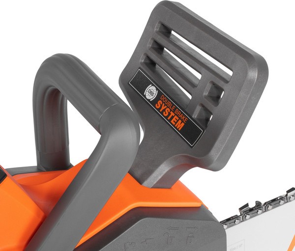 Механизм ленточного тормоза блокирует движение цепи в случае сильной отдачи, что снижает вероятность получения травм оператором.