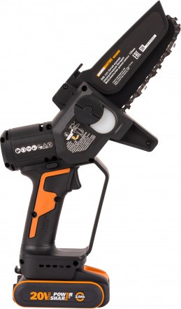 Мини-пила WG325E — компактная пила с шиной 12 см для обрезки сучьев и веток деревьев.