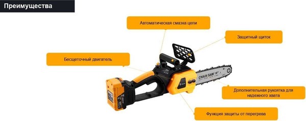 - Работа от аккумуляторов, обеспечивает тихую работу, без выхлопных газов.