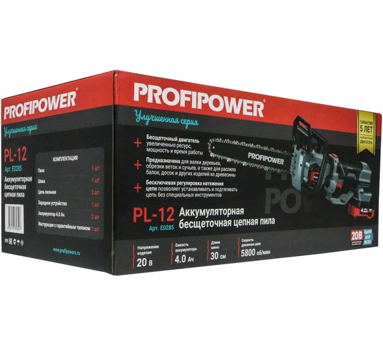 Аккумуляторная цепная пила Profipower PL-12 / E0285