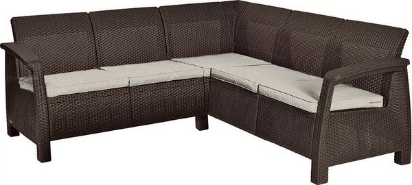 Угловой диван для сада обеспечит пользователям максимальный комфорт использования. Мебель легкой, но устойчивой конструкции, выполнена из высококачественного полимера, устойчивого к воздействию неблагоприятных погодных условий.