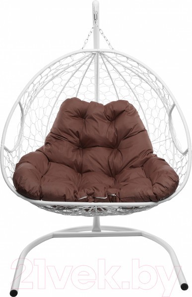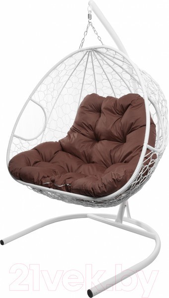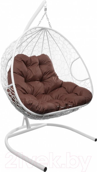 Кресло подвесное M-Group Для двоих / 11450105 (белый ротанг/коричневая подушка)