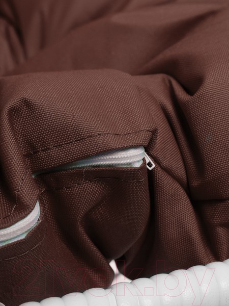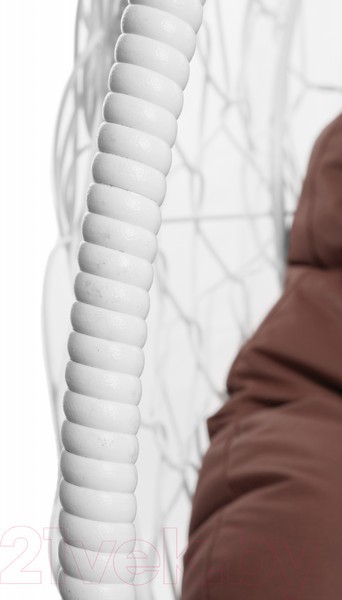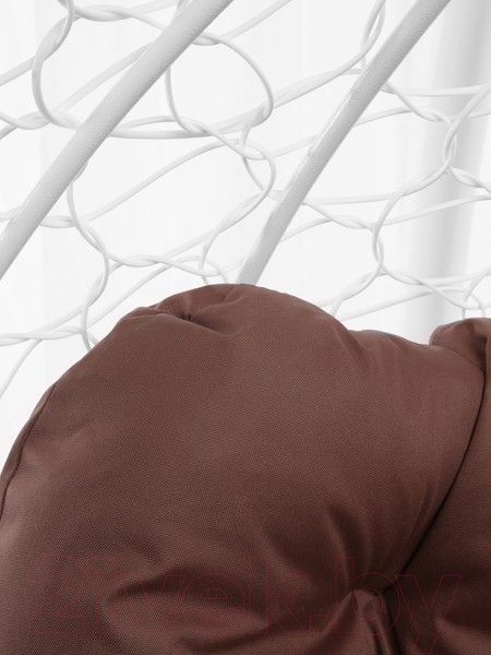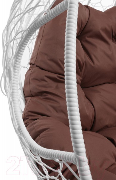 Кресло подвесное из коллекции «Для двоих» предназначено для сада, лоджии, балкона и веранды. Основа выполнена из прочного искусственного ротанга и металла, а обивка — из искусственного ротанга и текстиля. Белый цвет основы и коричневый цвет обивки создают стильный контраст, что делает кресло универсальным для различных интерьеров и экстерьеров.