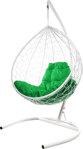 Кресло подвесное M-Group Капля / 11020104 (белый ротанг/зеленая подушка)