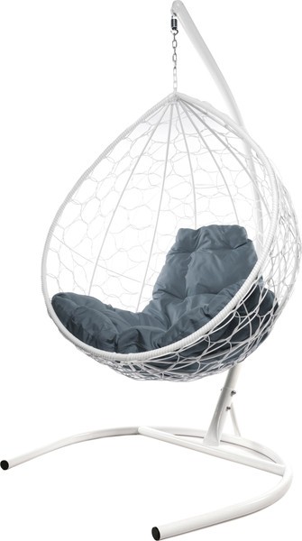 Кресло подвесное M-Group Капля / 11020109 (белый ротанг/серая подушка)