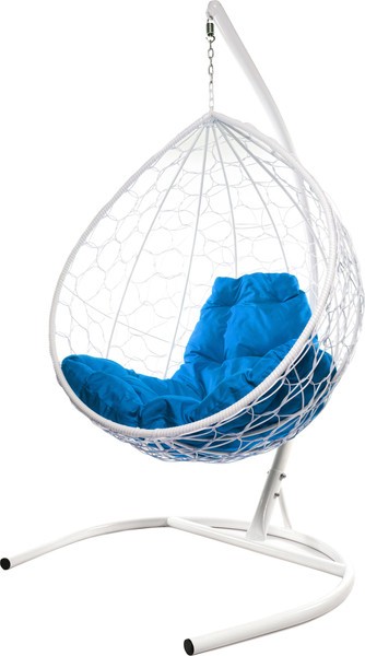Кресло подвесное M-Group Капля / 11020110 (белый ротанг/синяя подушка)