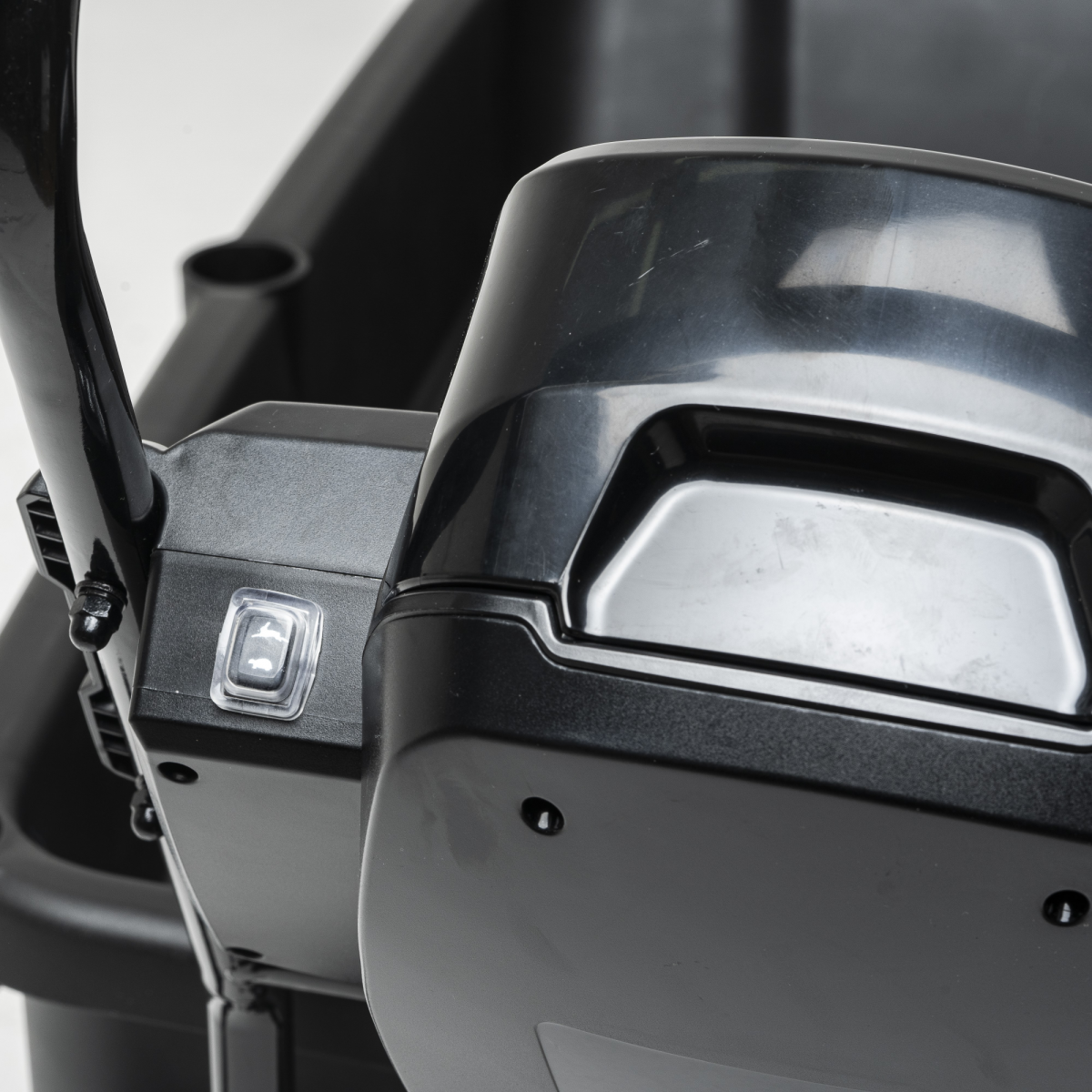 - Большой объём тележки до 106 л с подъемным механизмом и газовым упором;