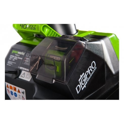 Этот снегоочиститель оснащен надежным бесщеточным двигателем DigiPro, который сопоставим по мощности с бензиновыми аналогами, при этом полностью экологичен, имеет высокий крутящий момент, низкий уровень шума и вибраций, а так же легок в использование, а именно не требует подготовки масло-бензиновой смеси и какого—либо обслуживания.