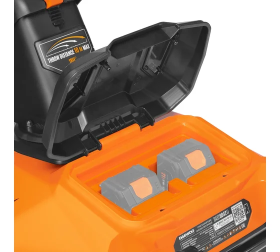 Снегоуборщик аккумуляторный Daewoo DAST 6042Li, аккумуляторный двигатель, напряжение: 42 В (21×2 шт), захват 51x28 см, выброс на 10 м, без АКБ и ЗУ