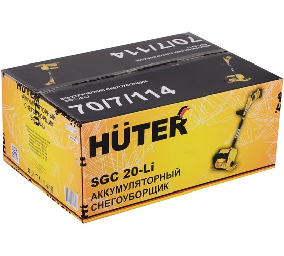 Снегоуборщик аккумуляторный Huter SGC 20Li, аккумуляторный двигатель, напряжение: 20 В, захват 30x22 см, аккумулятор 4.0 Ач (1 шт.) и зарядное устройство в комплекте