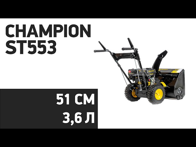 Бензиновая снегоуборочная машина Champion ST553, самоходная, 5.5 л.с., ширина захвата 53 см, высота захвата 51 см, дальность выброса 11 м.