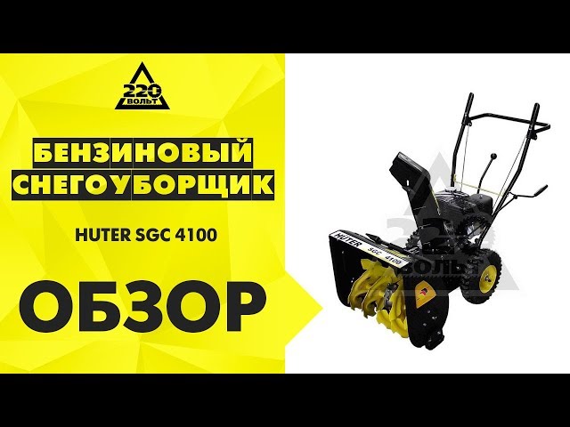 Уборка снега на приусадебном участке будет занимать минимум времени и сил, если приобрести снегоуборочную машину с бензиновым приводом HUTER SGC 4100. Снегоуборщик оснащён бензиновым двигателем мощностью 7 л.с. и семью скоростями (5 – вперёд и 2 – назад). Ширина захвата при одном проходе составляет 56 см. А высота захвата составляет 54 см. Высота подъема ковша регулируется металлическими башмаками. Объём топливного бака – 3.6 л.