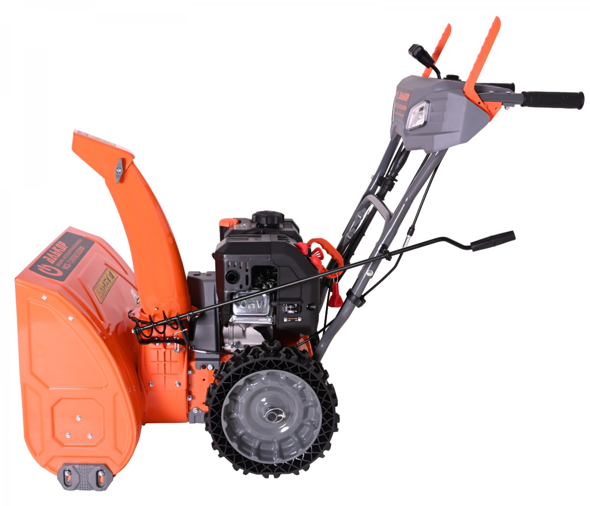 - На желобе установлен защитный фартук предотвращающий попадание снега на двигатель и оператора.