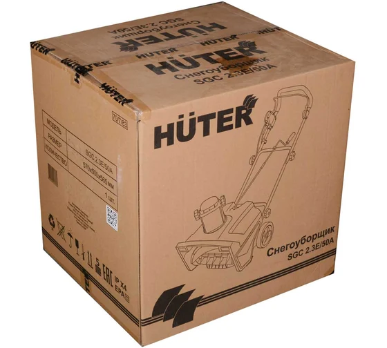 Снегоуборщик электрический Huter SGC 2.3E/50А (70/7/83), колесный движитель, электрический двигатель, мощность: 2300 Вт, захват 50x30 см, выброс на 5 м