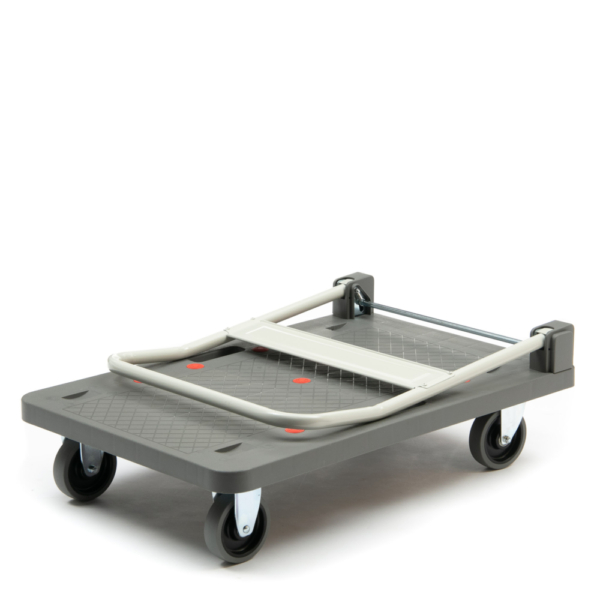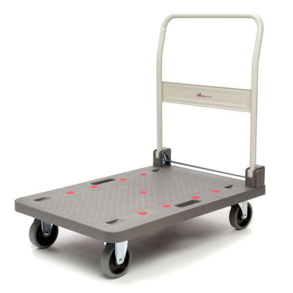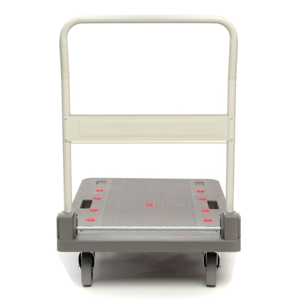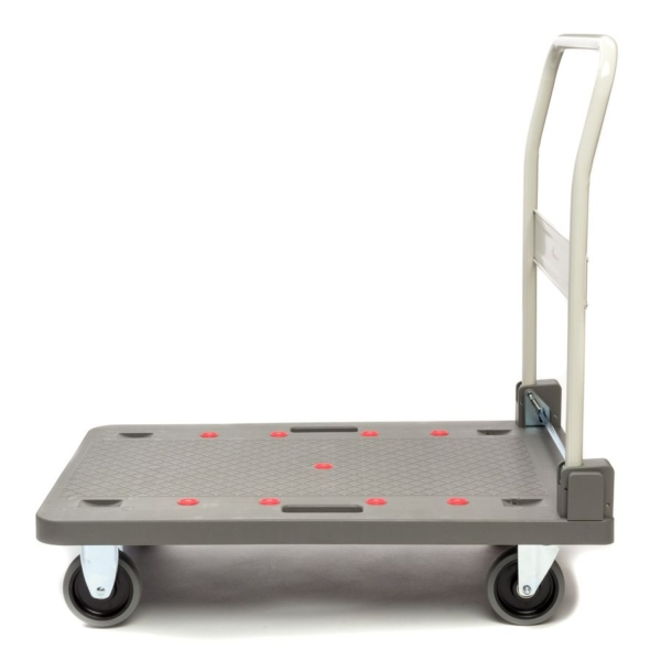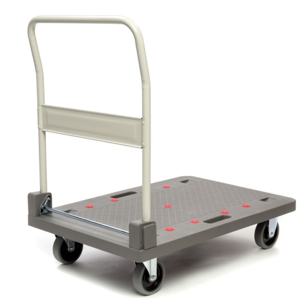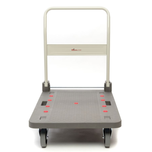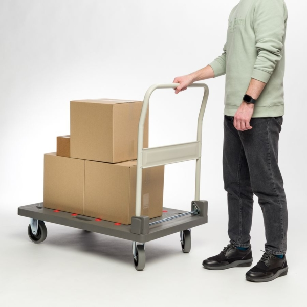 Тележка платформенная Стелла-техник FW-250П со складной ручкой предназначена для перевозки груза весом до 350 кг по ровной поверхности в магазине, офисе, на складе. Тележка оснащена удобной складной ручкой, противоскользящей пластиковой платформой. Оснащается двумя поворотными и двумя неповоротными колесами из литой резины. Наличие складной ручки обеспечивает компактное хранение тележки.