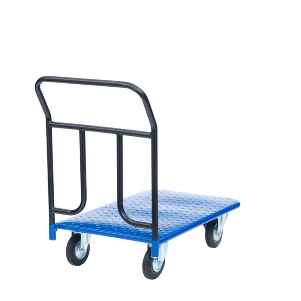 Благодаря цельному корпусу тележка очень прочна и надежна. Макс. нагрузка зависит от выбранных колесных опор. Вместительная металлическая платформа с габаритами 60х90 см идеальна для работы со среднегабаритными и крупногабаритными грузами. Съемная ручка закрепляется на основание болтами. Четырехколесная тележка КП-300 - отличный выбор для вашего склада, магазина или офиса.
