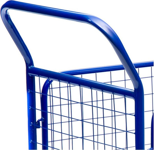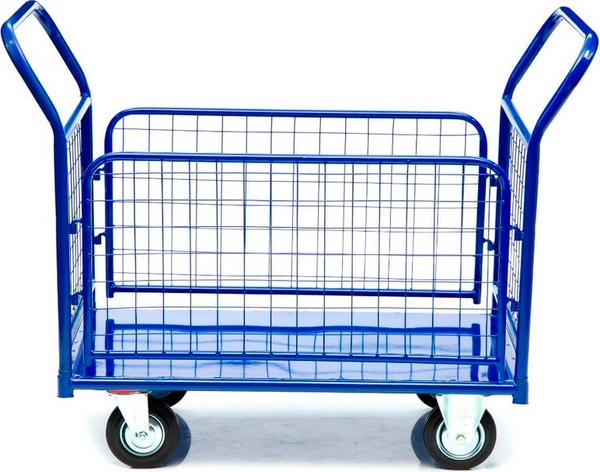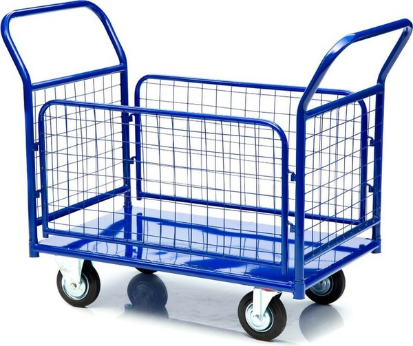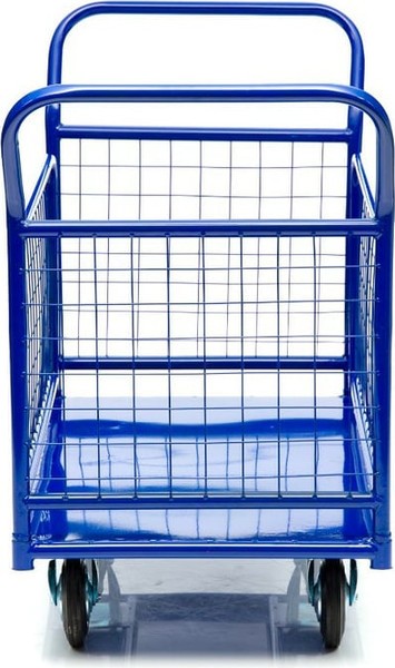 Металлический борт-сетка, с ячейками 50×50 мм, защищает груз от падения и ударов, что позволяет перевозить хрупкие предметы и сборные грузы. Ручки и борта тележки снимается для удобства транспортировки и компактного хранения. Высота боковых сетчатых бортов 480 мм, высота борта от платформы 500 мм, высота ручки 750 мм.