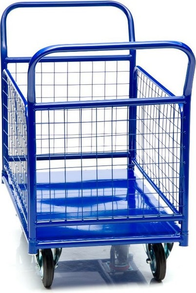 Платформенная тележка с бортами КПО-500С-125-К используется для транспортировки различных сборных грузов на оптовых базах и складах.