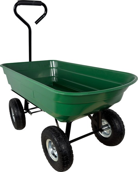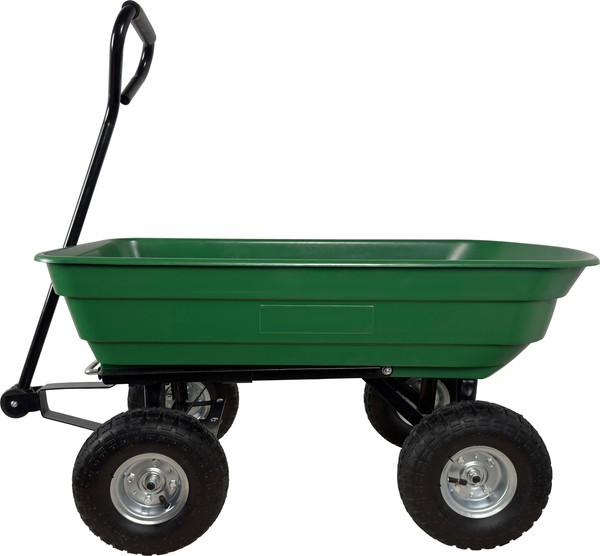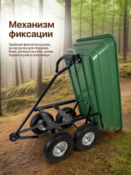 Тележка садовая служит для перевозки хозяйственных грузов, грунта, удобрений, мусора. В тележке установлены пневматические колеса, что делает ее ход более мягким. Пластиковое корыто можно с легкостью выгружать благодаря специальному механизму фиксации.