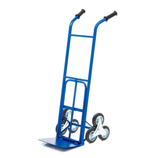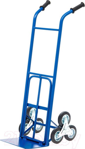 Тележка грузовая с откидной полкой, предназначена для транспортировки груза. Тележка оснащена парой трехопорных (лестничных) колес, что обеспечивает легкое перемещение по лестнице. Покрытие полимерное.