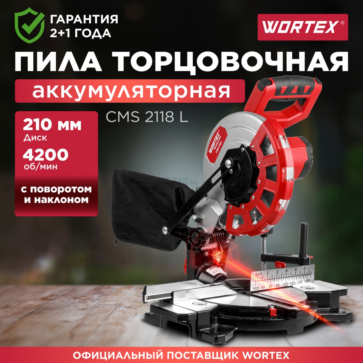 Торцовочная пила Wortex CMS 2118 L (18 В, диаметр диска: 210 мм, 4200 об/мин, без аккумулятора в комплекте)