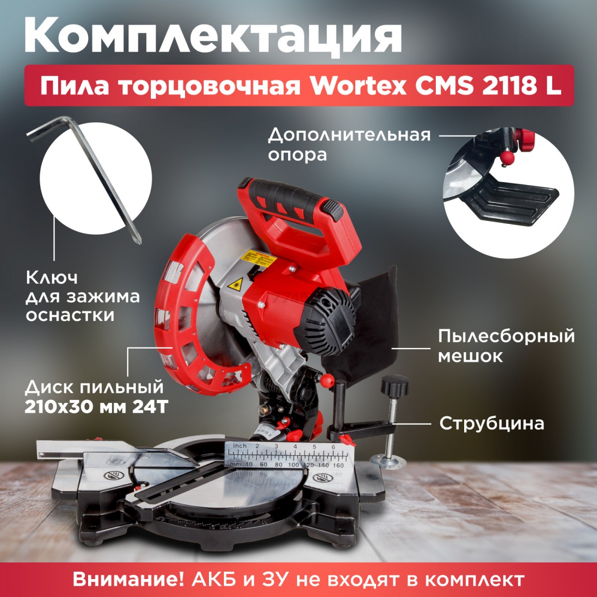 Торцовочная пила Wortex CMS 2118 L (без АКБ)