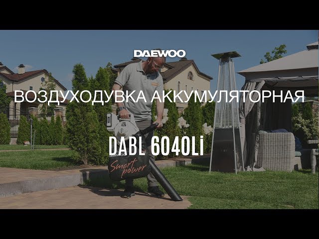 Воздуходувка-пылесос аккумуляторная DAEWOO DABL 6040Li (без батареи) 40В, щеточный двигатель, скорость выдувания 60 м/с: скорость всасывания 20 м/с, мешок для сбора и плечевой ремень, 3,5 кг. Комплектация: воздуходувка-пылесос, мешок для сбора, труба для всасывания, труба для выдувания, коробка